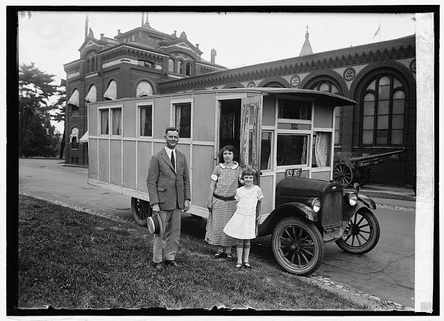 This 1924 photograph of an “auto house” captures a moment when the idea of life on the road was taking imaginative new forms. More novelty than necessity, it reflects an era fascinated with mobility and invention - inviting us to wonder about the creativity, ambition, and audacity behind turning one's car into a rolling home or home away from home - there is no public contextual information available with this photograph. I wish I could go inside! So many questions!